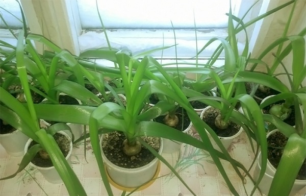 Na jar, keď listy indickej cibule začnú trochu vysychať, ich orežte. Potom rastlina začne rásť. V lete, ak sa rastlina pestuje v kvetináčoch, ju možno premiestniť na balkón alebo verandu.