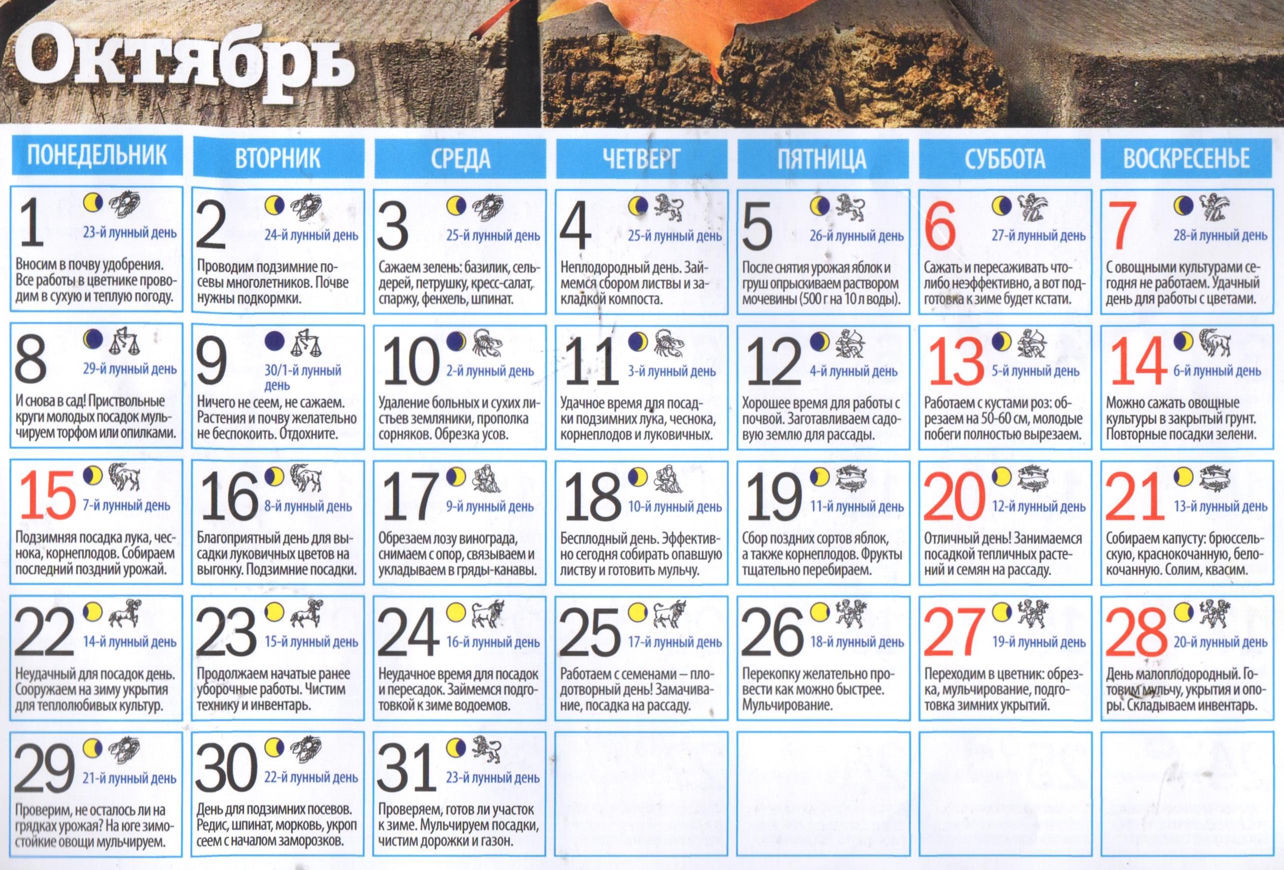 4. a 5. októbra sa náš satelit bude nachádzať v súhvezdí Lev – je to vynikajúci čas na zber koreňovej zeleniny (najmä zemiakov) a môžete dokončiť zber kapusty, ovocia a bobúľ. Môžete zbierať semená, bojovať proti škodcom a mulčovať kmene stromov na zimu. Od samého začiatku mesiaca sa vyhýbajte siatiu, sadeniu alebo presádzaniu; je lepšie využiť čas na kontrolu škodcov a obrábanie pôdy.