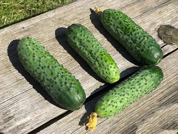 Plody sú malé, dlhé asi 10 cm a vážia 60 – 80 g. Povrch je hrboľatý, pri menších uhorkách aj pichľavý. Šupka je tenká, tmavozelená s mierne modrastým nádychom. Dužina je svetlozelená, sladká a vôbec nie horká. Uhorky sa dobre prepravujú a dajú sa skladovať na chladnom mieste asi dva týždne.