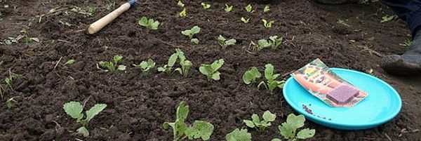 - Semená sa vysádzajú do vopred pripravených brázd do hĺbky 3 cm. Medzi nimi by sa mala udržiavať vzdialenosť 20–25 cm. Vzdialenosť medzi riadkami môže dosiahnuť 50–60 cm. Je to spôsobené tým, že koreňové plodiny tejto odrody sú pomerne veľké;