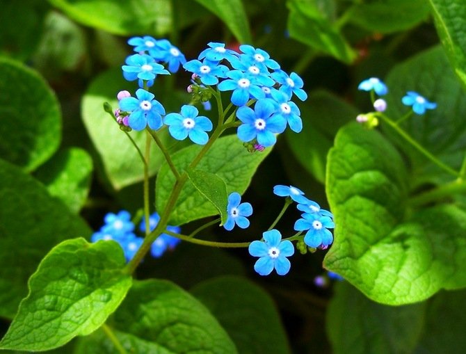 Zelené stonky sú pokryté modrými, bielymi a modrými kvetmi. Kvitne od apríla do mája. Dorastá do výšky 20 cm. Rastlina miluje slnko, ale toleruje aj mierny polotieň. Odporúča sa na výsadbu v blízkosti: