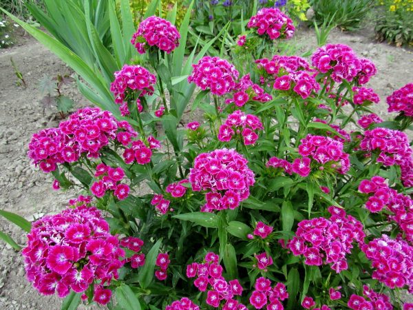 Kvitne od júna do septembra. Malé, zúbkované okvetné lístky tvoria hustú, viacfarebnú čiapočku, ktorá oživuje záhradu odtieňmi od bielej po žiarivo fialovú. Výška rôznych hybridov sa pohybuje od 30 do 70 cm. Rozmnožuje sa samovýsevom. Odporúča sa na výsadbu na otvorených plochách alebo v polotieni listnatých porastov.