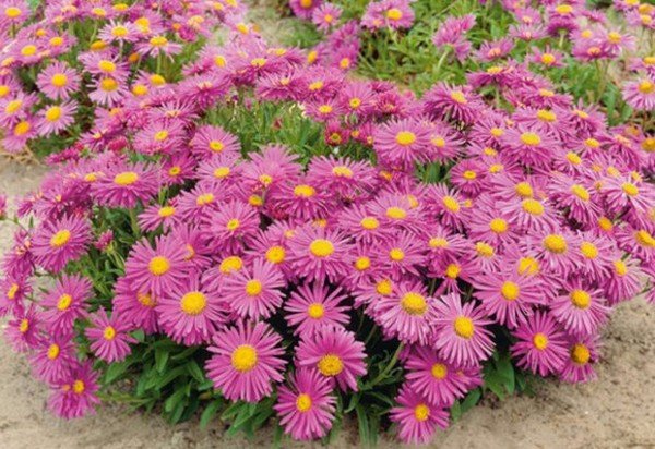 - Talianska astra je bylinný, listnatý ker pokrytý malými kvetmi.