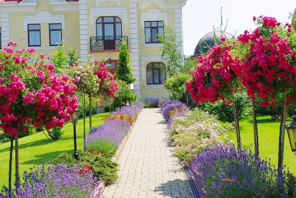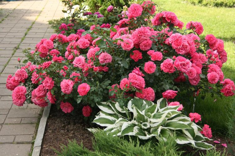 Ruža Rosarium Uetersen v záhradnom dizajne