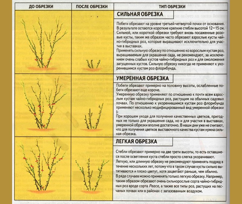 Existujú tri úrovne rezu popínavých ruží: silný, stredný a ľahký. Popis každej úrovne je uvedený v tabuľke nižšie: