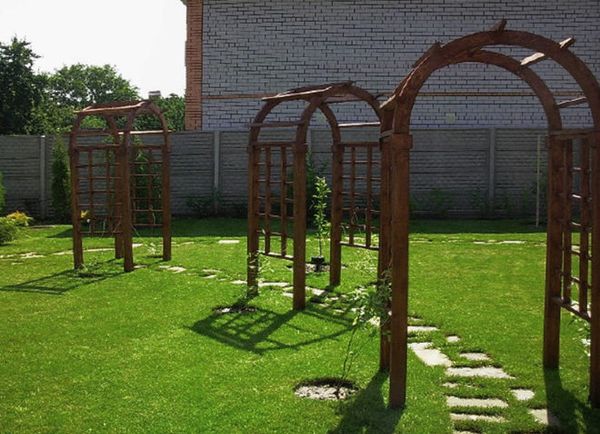 Drevené a PVC dosky sa používajú, ak plánujete pestovať odrodové hrozno, ktoré každú sezónu prináša bohatú úrodu. Stojí za zmienku, že postaviť drevený oblúk na hrozno svojpomocne je oveľa jednoduchšie ako postaviť ho z iných materiálov. Pred použitím dreva sa predbežne ošetrí antiseptikom, namorí a potom natrie lakom odolným voči vlhkosti. Táto úprava predĺži životnosť konštrukcie.