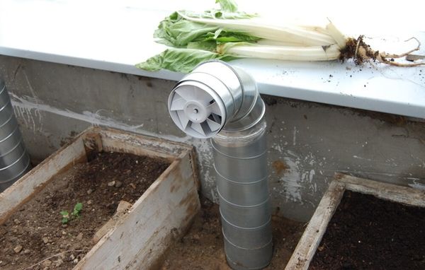 Na to sa používa elektrická teplovzdušná pištoľ. Ohriaty vzduch prechádza potrubím a ohrieva priestor. Po miernom ochladení klesá po šikmej línii do pôdy. Ventilátory ho nasávajú do potrubí pod záhonmi, kde odovzdáva teplo pôde. Po úplnom ochladení sa vracia späť do miestnosti. Mnoho záhradkárov si ako alternatívu k elektrickému ohrievaču stavia vlastné kachle na drevo.